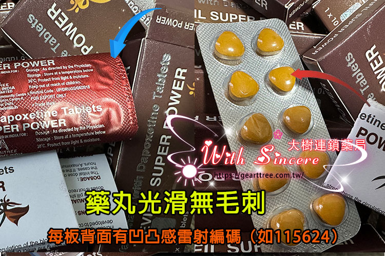 藥板壓印編碼 每板背面有凹凸感雷射編碼(如115624) 編碼為平面印刷或缺失
