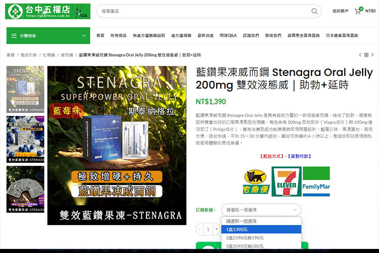 目前市面上已有多家線上藥局提供藍鑽果凍威而鋼(Stenagra Oral Jelly)的訂購服務,支援免處方、超商取貨、宅配到府等多元購物方式,對消費者而言相當便利。但在享受便利的同時,也必須高度警惕以下風險與挑選原則: