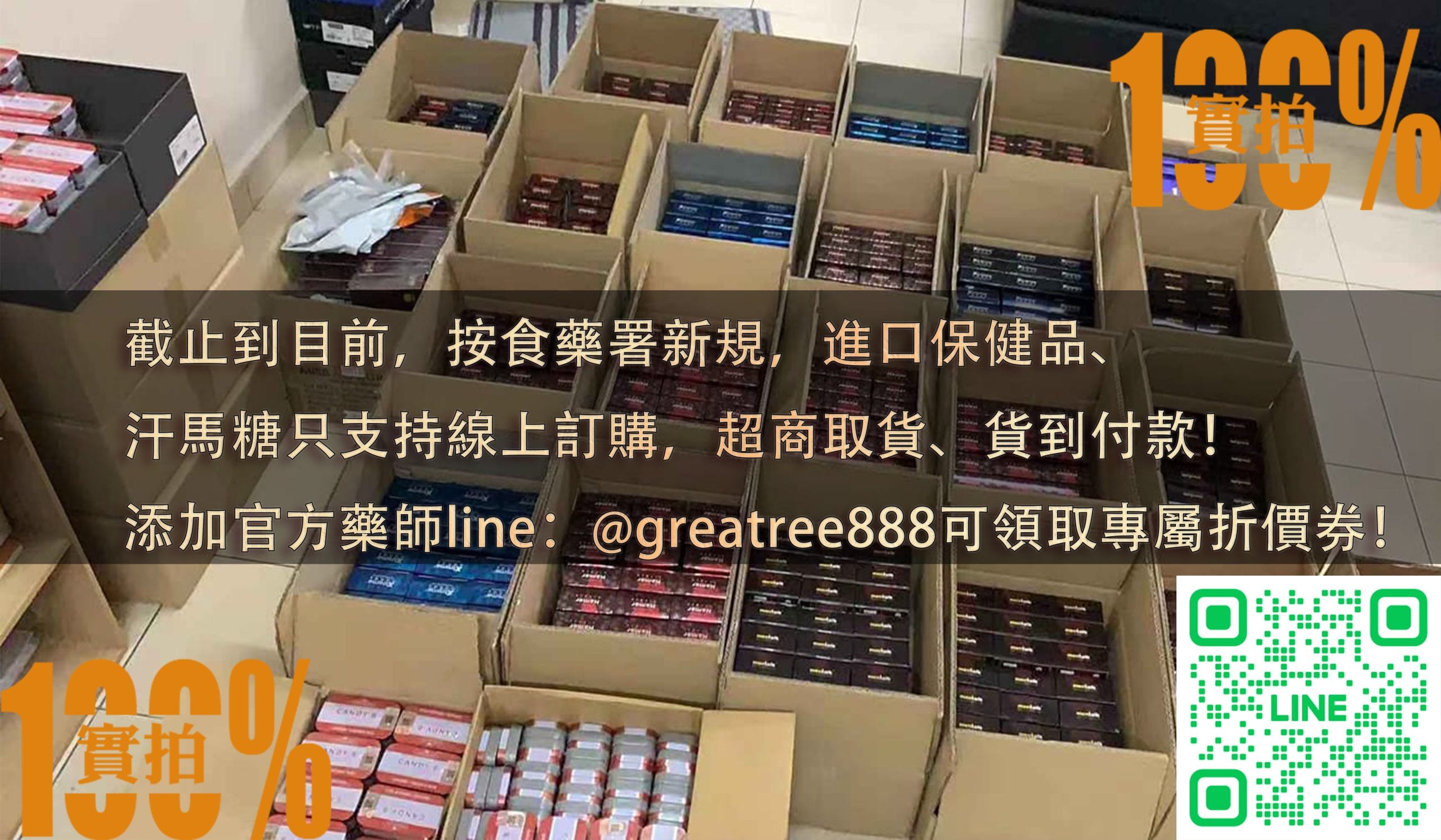 截止到目前,按食藥署新規,進口保健品、汗馬糖只支持線上訂購,超商取貨、貨到付款!