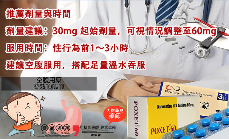 | 原廠 Priligy 30mg / 3錠 | NT$1,200 | 高品質,需處方 | 醫院 / 實體藥局 |