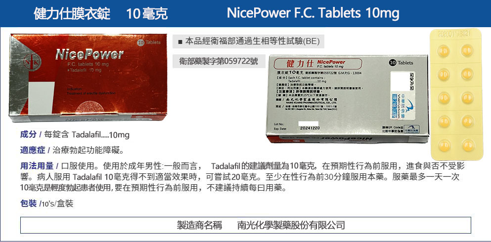 健力仕 NicePower 10mg|Tadalafil 全新包裝 助勃增硬 10錠裝