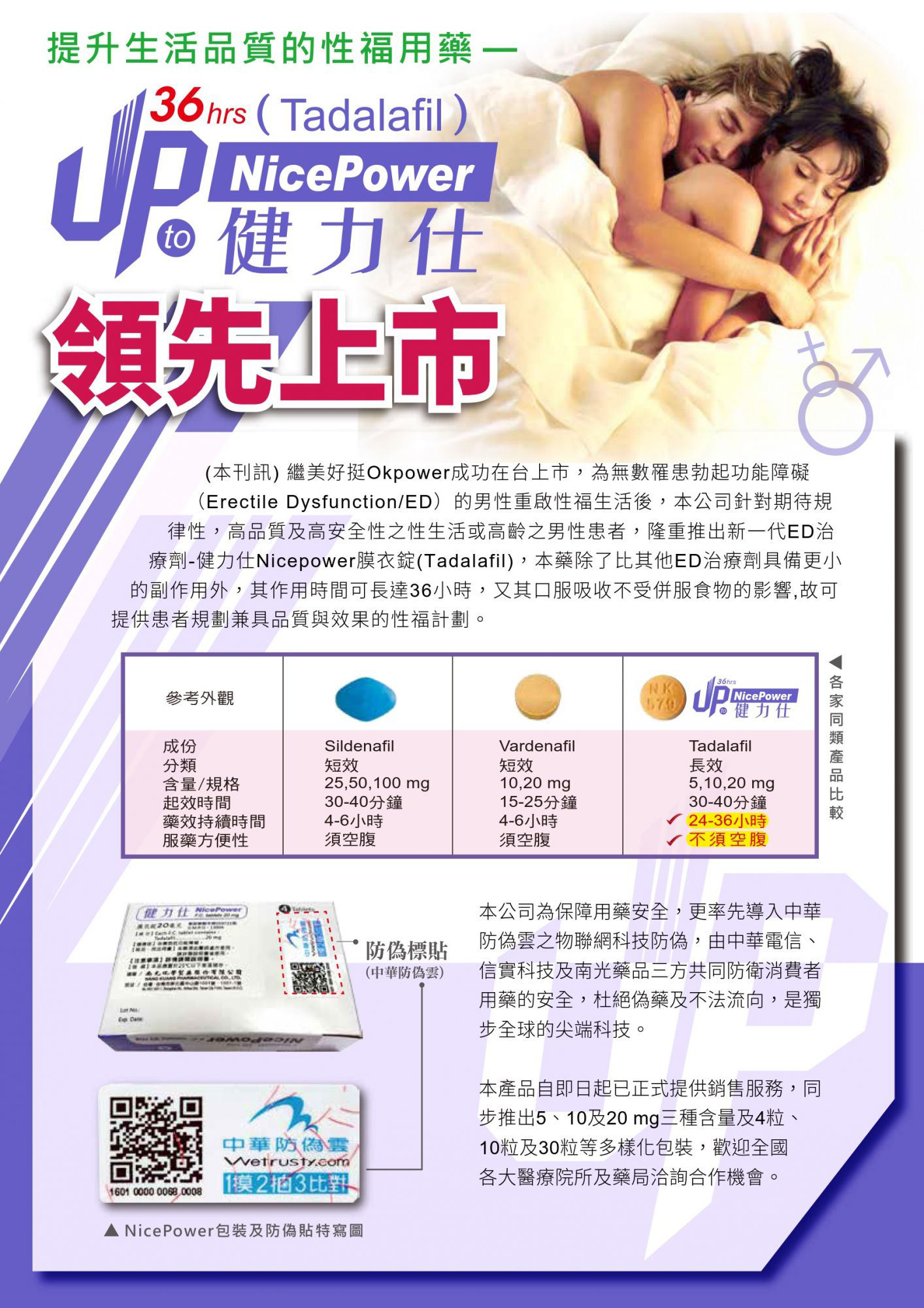 • 藥品類別:PDE5 抑制劑(需醫師處方)
