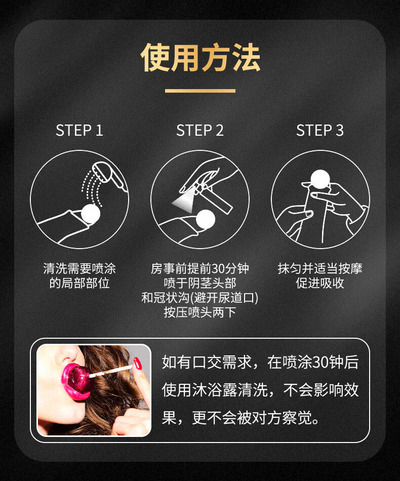 • 噴後可能出現局部輕微麻木感,不影響快感或勃起