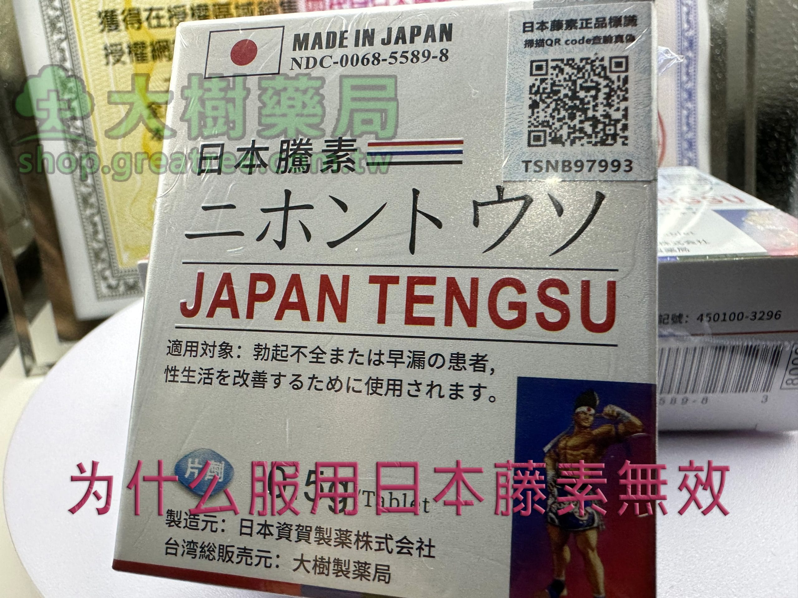 日本藤素(JAPAN TENGSU)是日本京都資賀製藥出品的一款保健品,能夠治療性功能障礙,延長性愛時間,長期用藥可達到增大陰莖的效果!成分百分百的動植物萃取,它的成分為:赤根草、雄鹿鞭、澱粉等。日本藤素以其無副作用的特地迅速成為壯陽藥市場中的寵兒!但也有部分用戶反映“服用日本藤素無效,反映日本藤素沒用這一問題”,今日由大樹藥局(gerattree.com)為大家詳細解答!